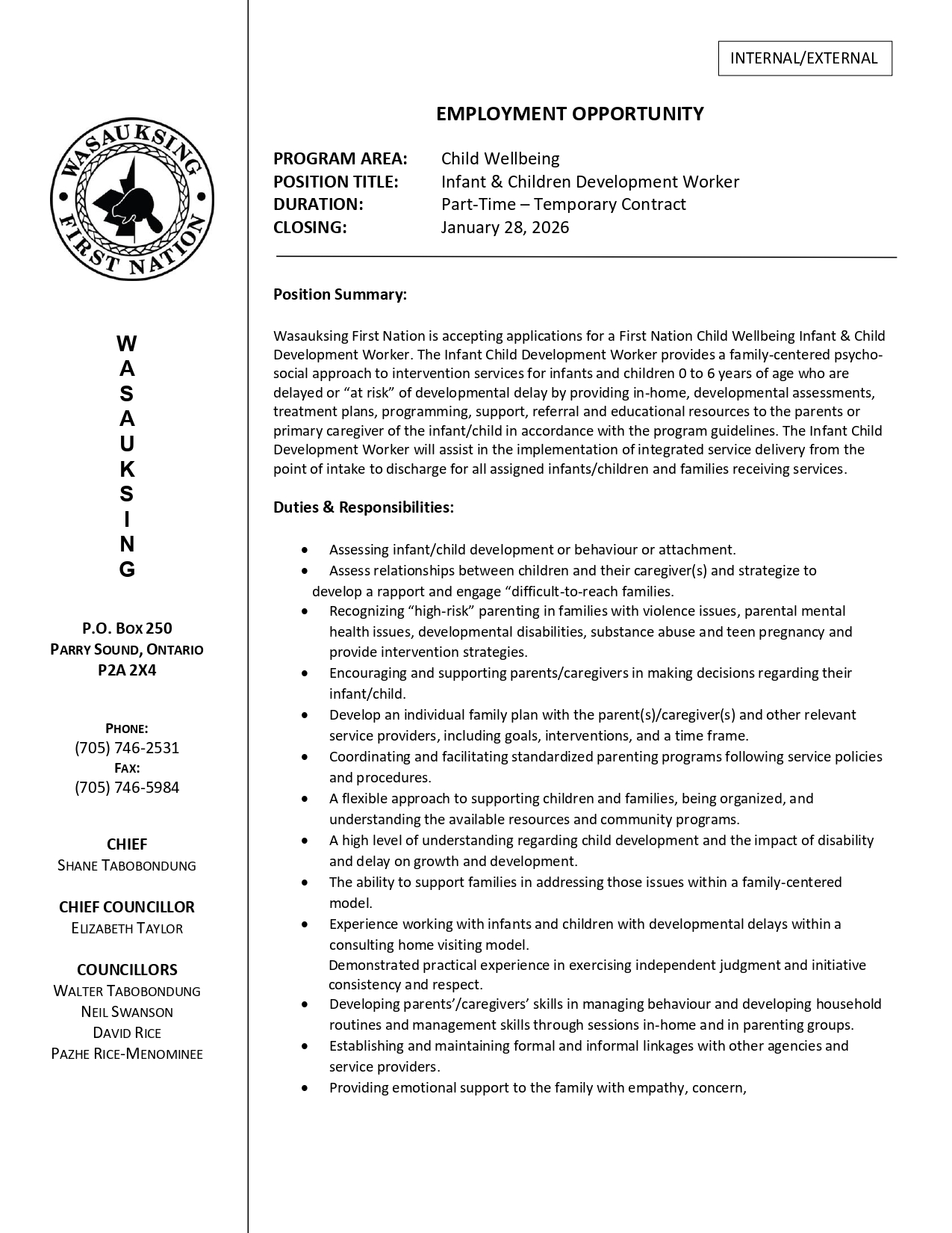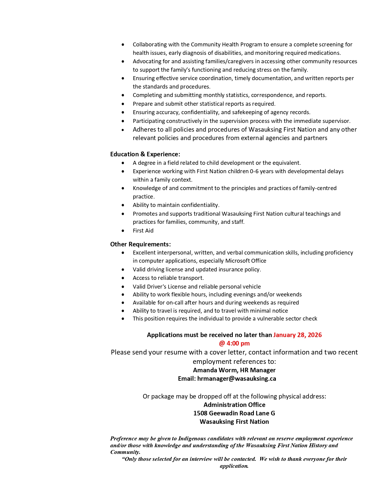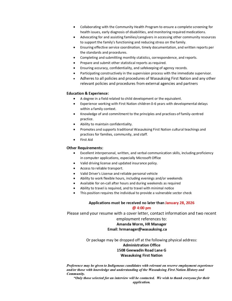 Infant & Children Development Worker – January 28