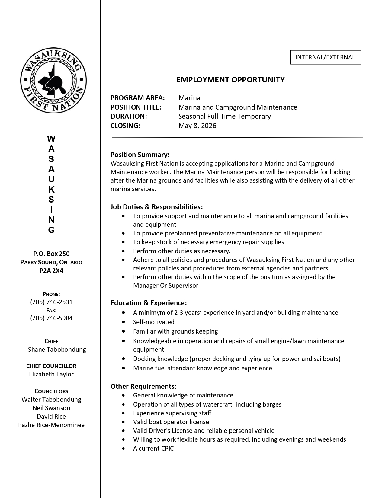 Wasauksing First Nation Community Newsletter