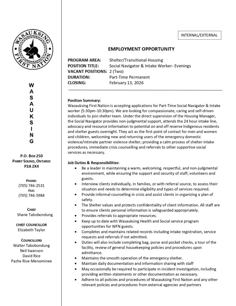 Social Navigator/Intake Worker (Evenings) x2 – February 13