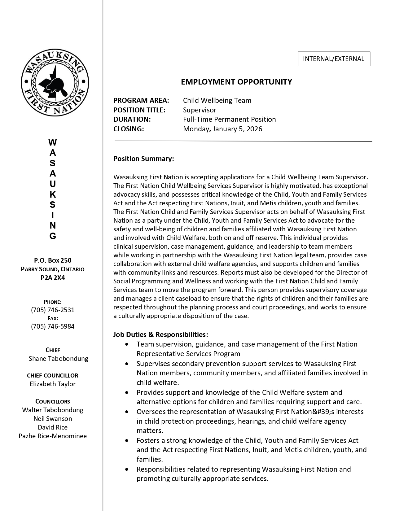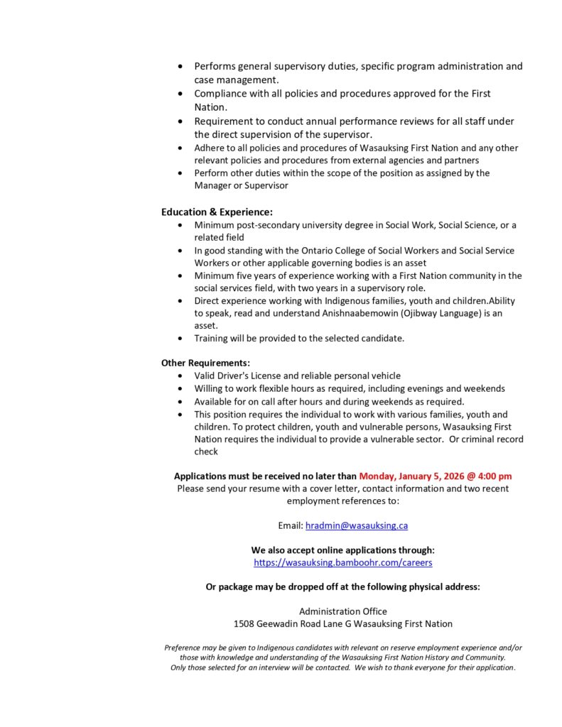• Jordan’s Principle Support Worker – January 5 December 1, 2025